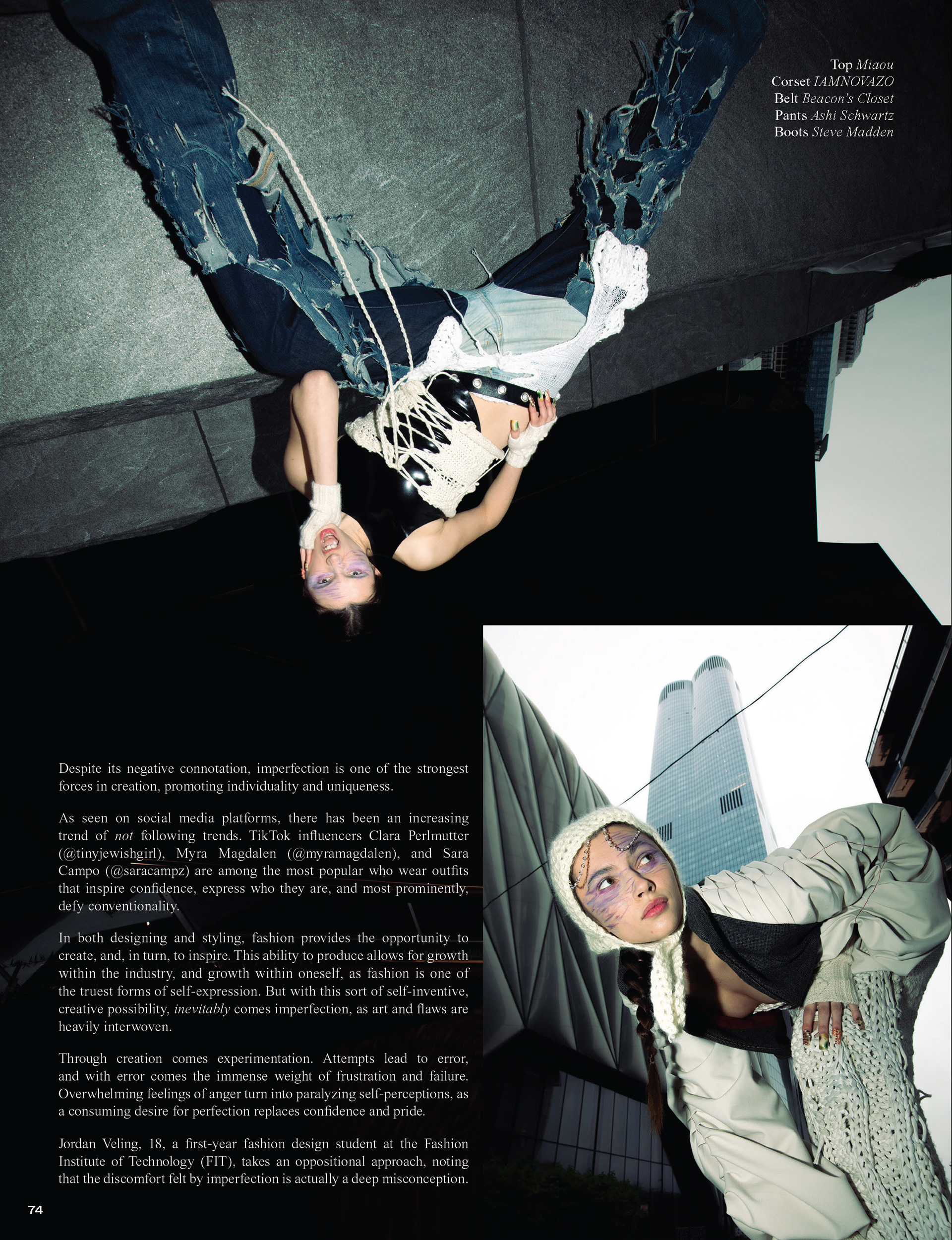The award-winning fashion and beauty magazine of the Fashion Institute of Technology, State University of New York. The Pleated-SleeveĀ Bomber Jacket was featured in the article "The Art of Imperfection"