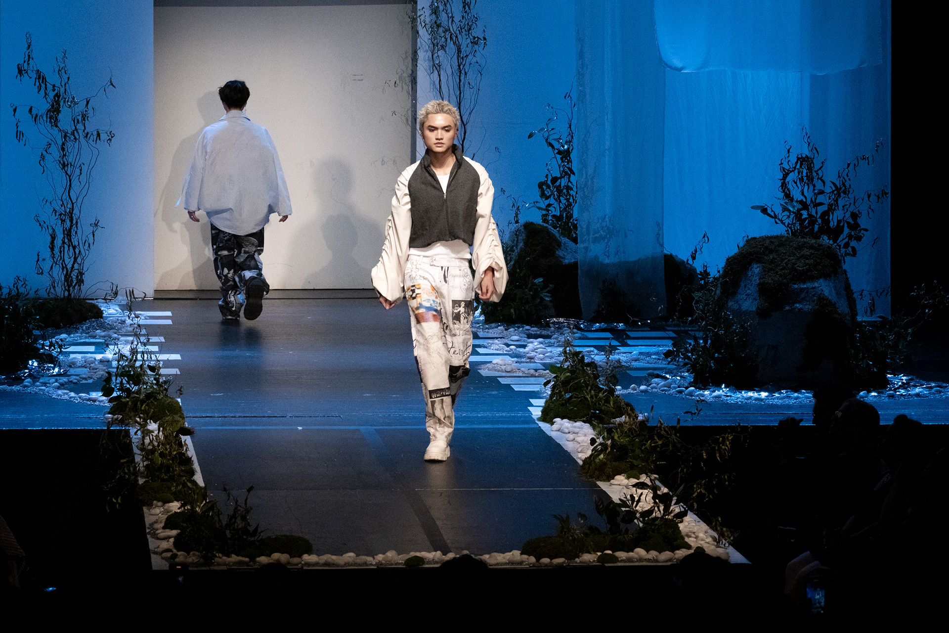Student-run Fashion Show Organization at Fashion Institute of Technology. Pleated Sleeve Bomber Jacket featured in the "air" portion of the show